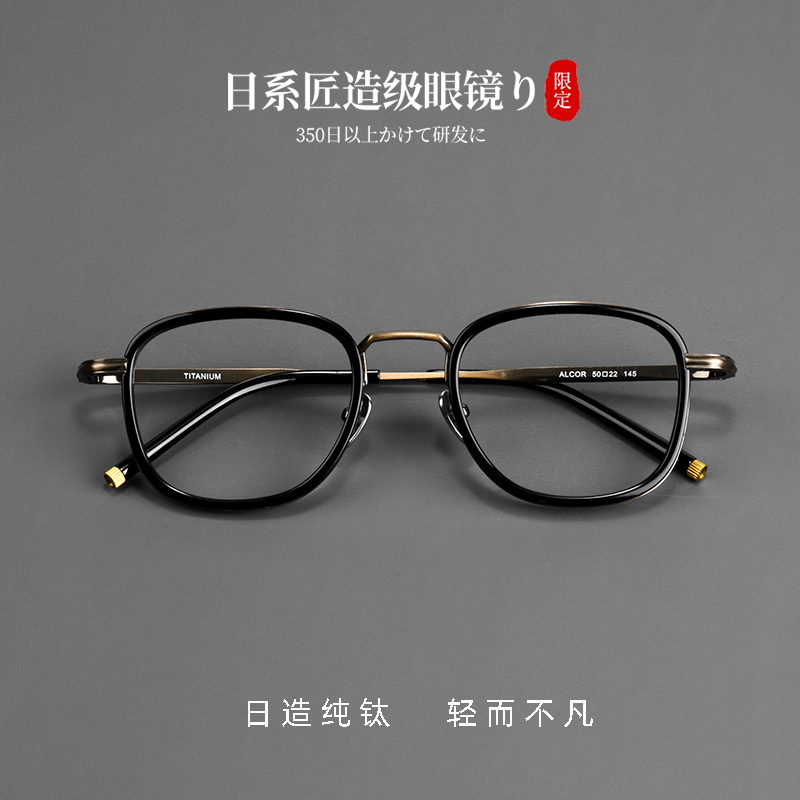何乐不为!日本超轻中金雕花纯钛女复古板材男潮近视椭圆眼镜框架