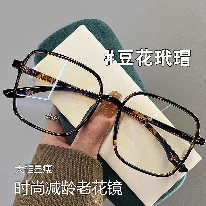 小红书韩版时尚年轻老花镜男女豹纹大框防蓝光抗辐射中老年老视镜