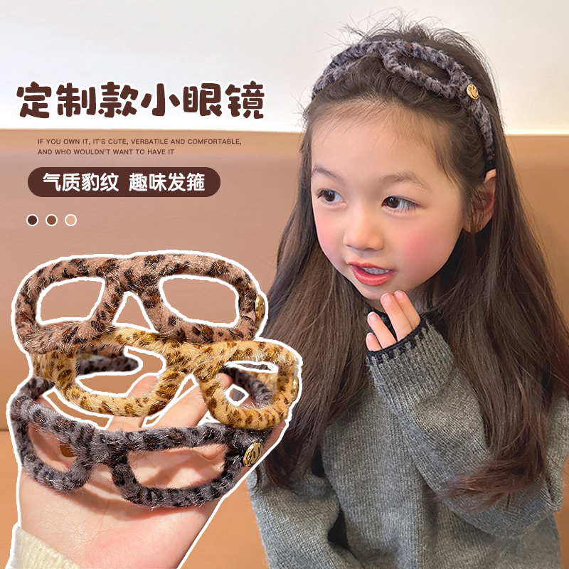 儿童豹纹眼镜框发箍2025秋冬新款洗脸压发头箍时尚小女孩气质发卡