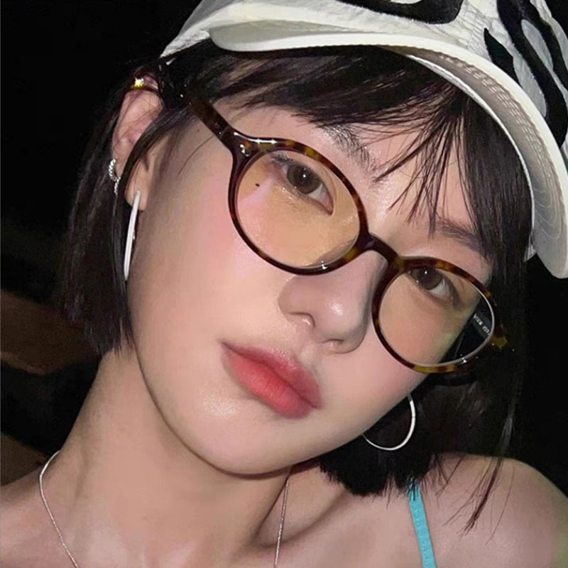 韩系椭圆大框豹纹复古防蓝光眼镜女士时尚显脸小素颜休闲近视镜框