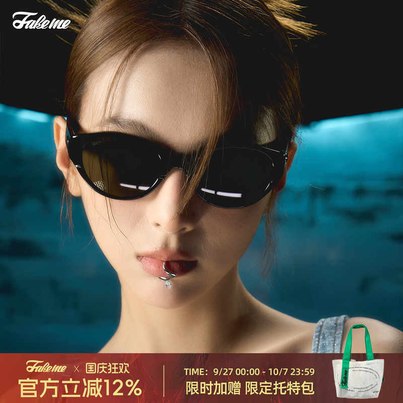Fakeme 猫眼个性黑框防晒防紫外线百搭复古太阳镜女素颜眼镜墨镜