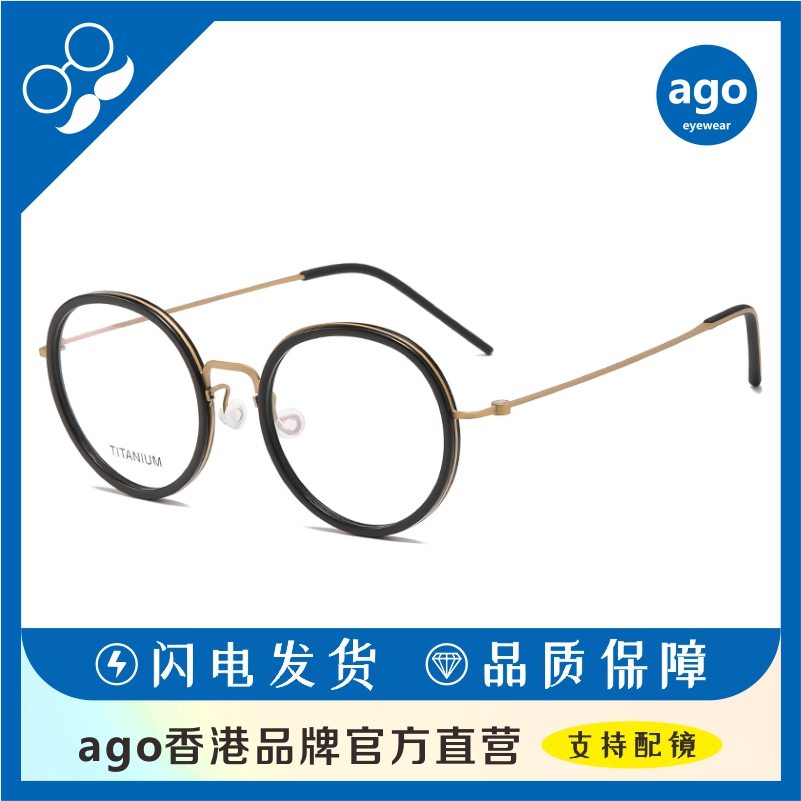 ago香港官方超轻眼镜架无螺丝纯钛7g圆形板材休闲高时尚男女镜框