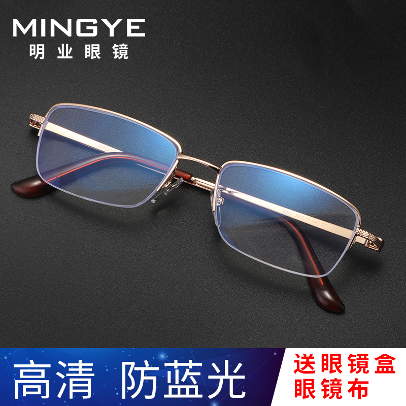 合金眼镜框男半框老花眼镜架可配高清树脂渐进多焦点大框眼镜