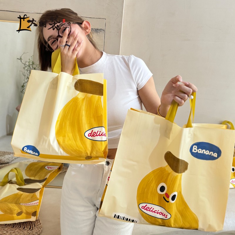 大时袋香蕉手提袋加厚磨砂塑料袋可爱购物袋礼品袋百搭定制包装袋