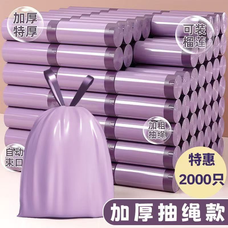 家用手提式加厚特厚厨房塑料袋紫色大号收口自动宿舍抽绳垃圾袋