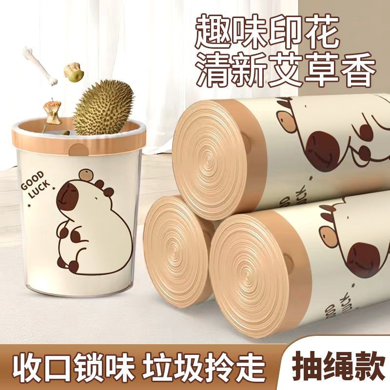 【自动收口】驱蚊垃圾袋抽绳式厨余垃圾艾草大号加厚手提式塑料袋