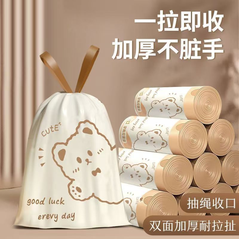 小熊印花垃圾袋手提式印花抽绳垃圾袋子加厚手提式家用自动收口