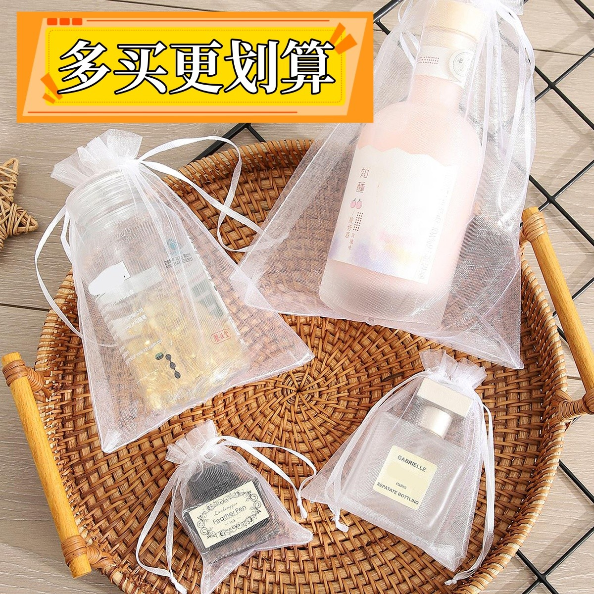 白色香包干花空袋抽绳束口网纱袋透气网时袋大号透气网纱护手霜