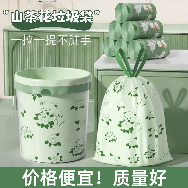 加大山茶花抽绳袋宿舍厨房抽绳手提袋加厚塑料袋家用大号垃圾袋