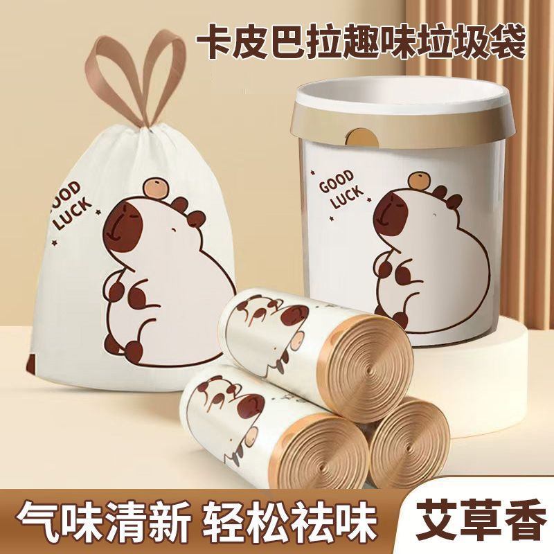 加厚抽绳式垃圾袋印花富贵兔垃圾袋家用手提厨房学生塑料袋提拉袋