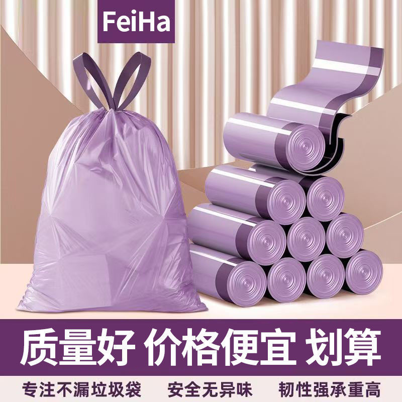 手撕特厚紫色香氛抽绳式垃圾袋加厚特厚实惠装手提式塑料袋家用