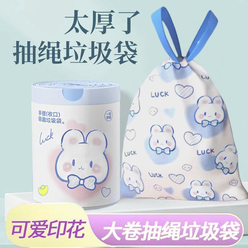 卡通蓝心兔抽绳款垃圾袋家用加大加厚宿舍适用自动收口大号塑料袋