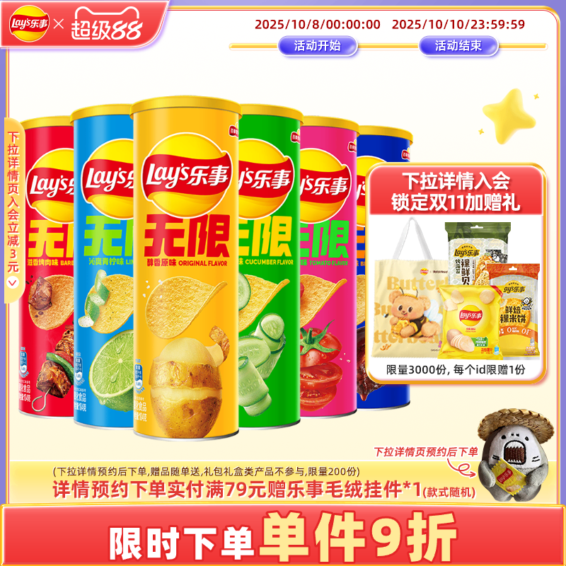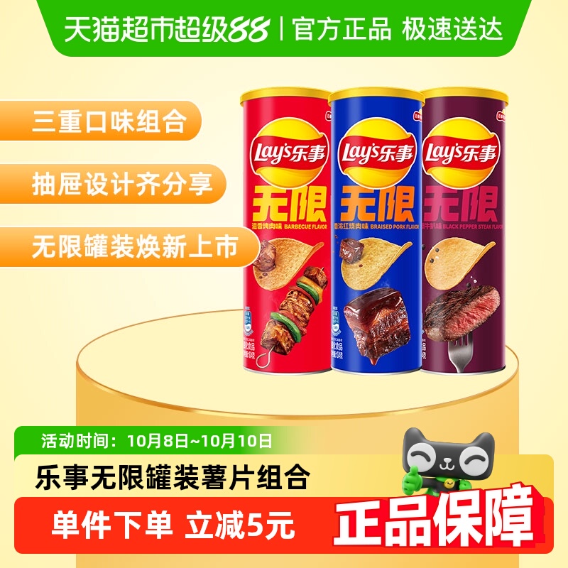 【吴磊推荐】乐事无限罐装办公室薯片104g*6零食解馋休闲零食宿舍
