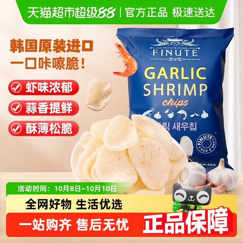 进口韩国趣莱福网红休闲膨化追剧零食小吃蒜味鲜虾片香脆薯片礼包