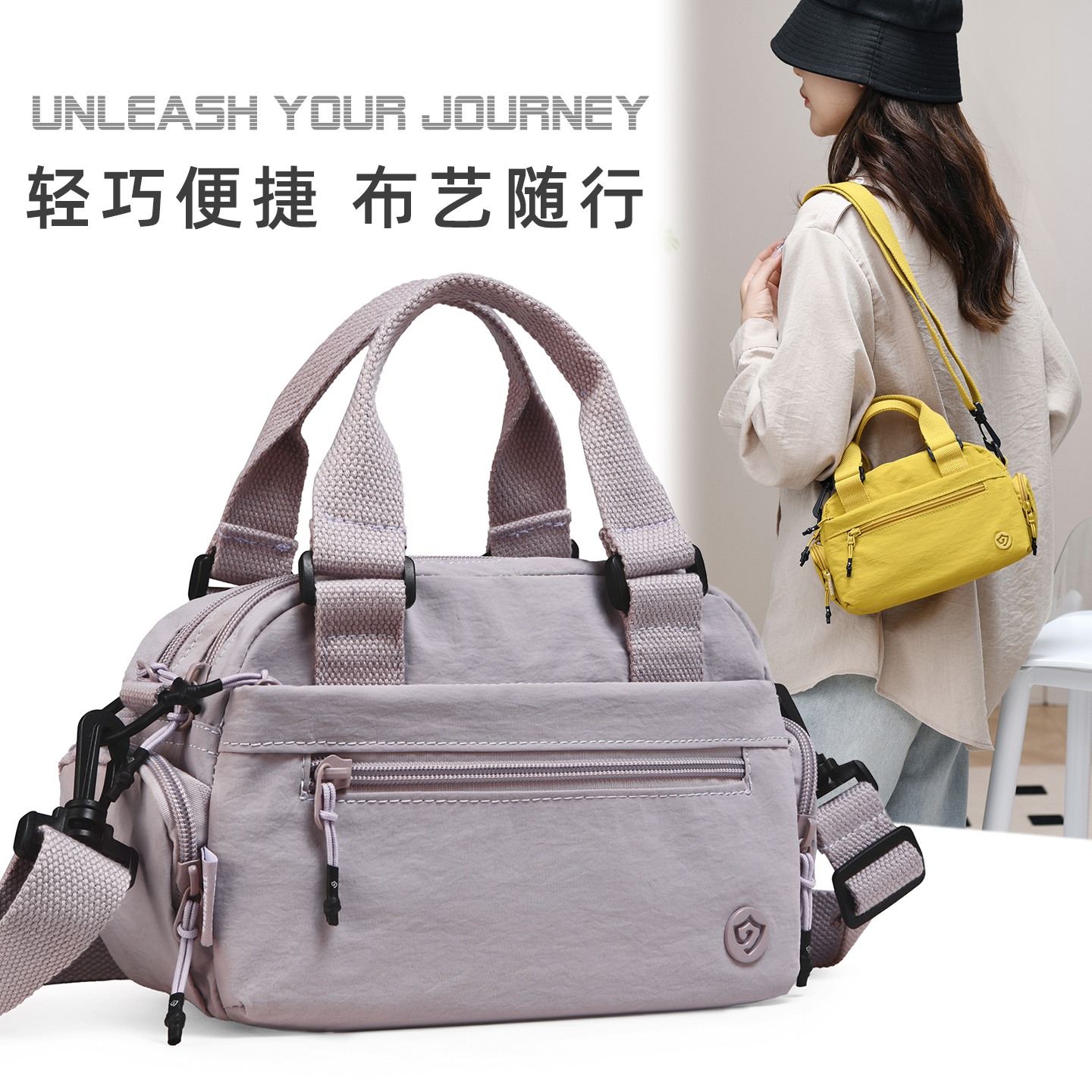 帆布包女斜挎包多层大容量简约女式包轻便小巧牛津布手提背包单肩