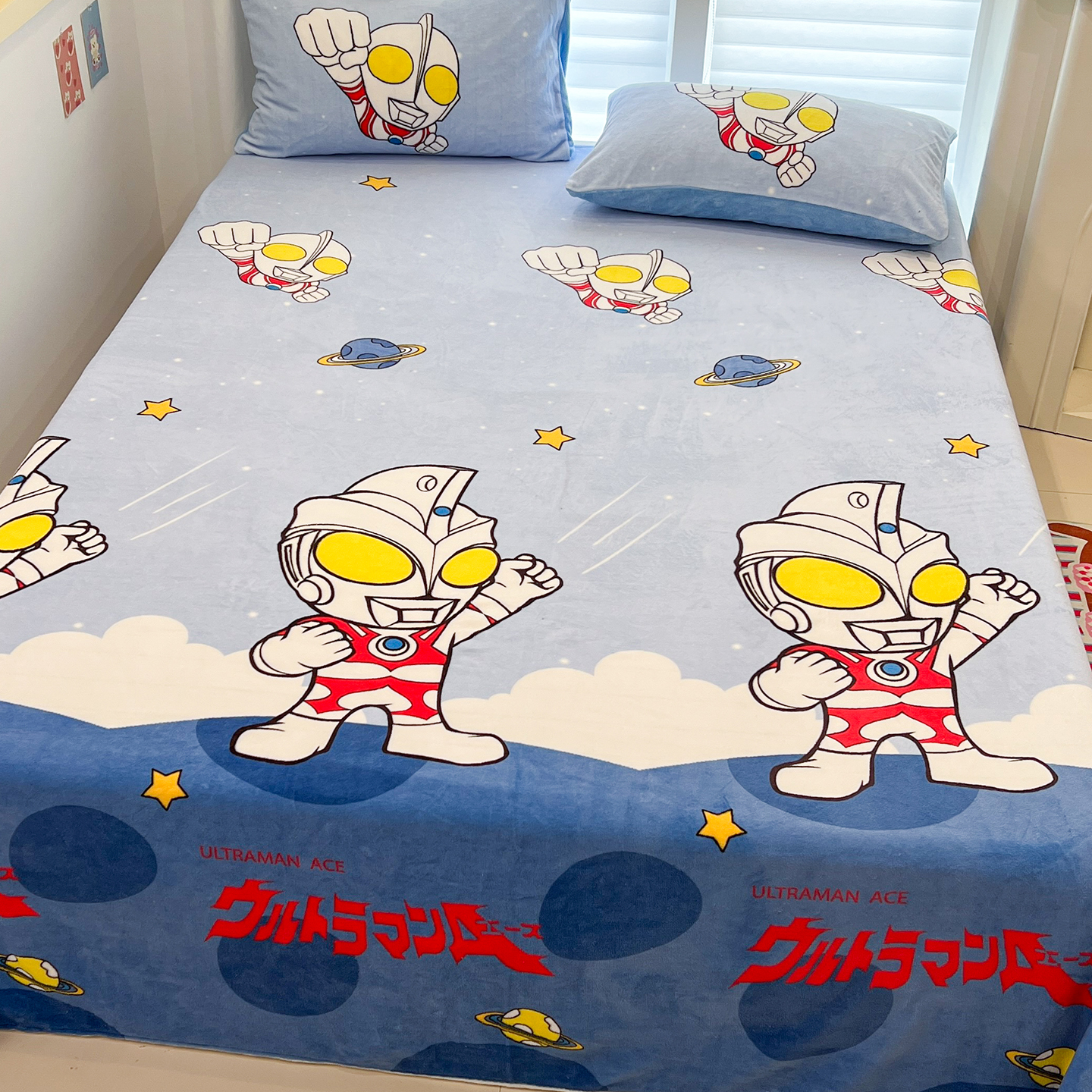 儿童牛奶绒床单单件奥特曼冬季加绒加厚珊瑚绒学生宿舍单人被单男