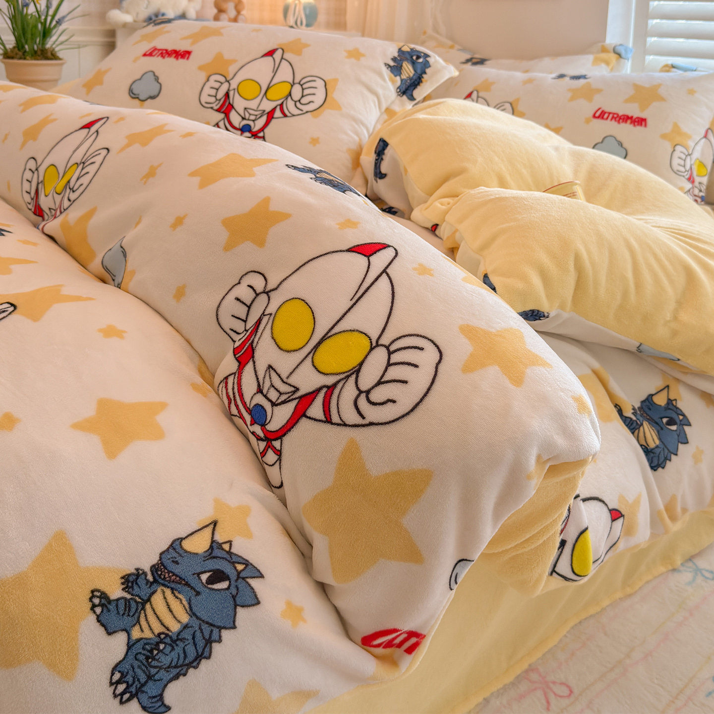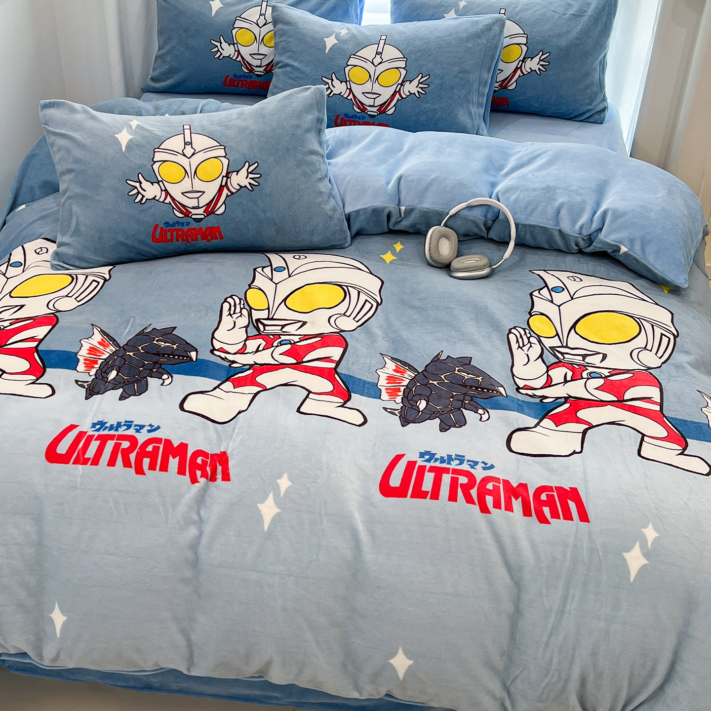 奥特曼牛奶绒床上四件套冬季儿童男孩加绒加厚珊瑚绒床单被套床品