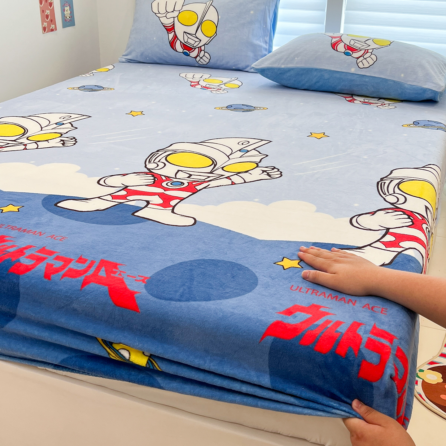 珊瑚牛奶绒床笠儿童奥特曼床罩男孩小学生加绒加厚全包床单床垫套