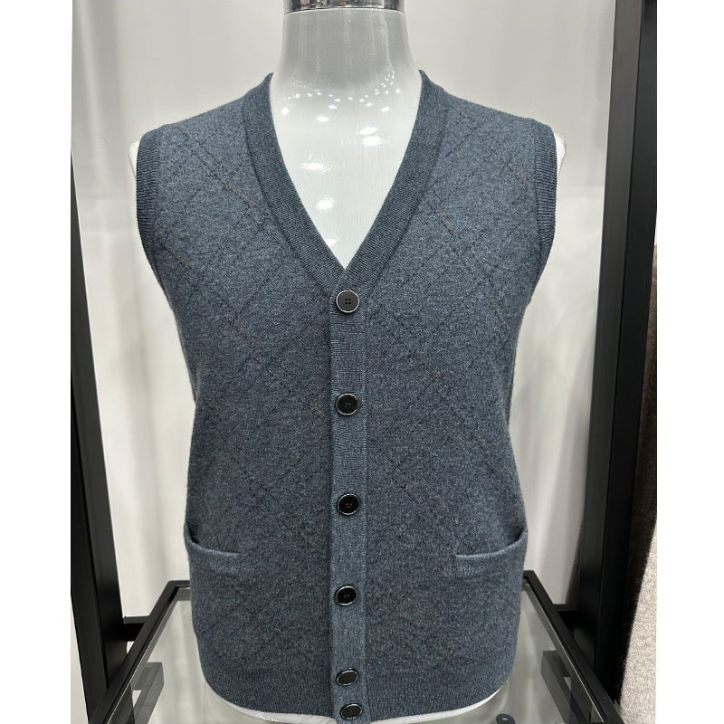 H标100%纯羊毛V领羊毛衫男冬季加厚保暖背心中老年休闲马甲毛衣