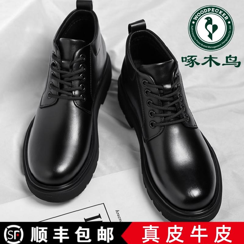 啄木鸟马丁靴男冬季真皮加绒保暖休闲高帮棉鞋男士羊毛软底雪地靴