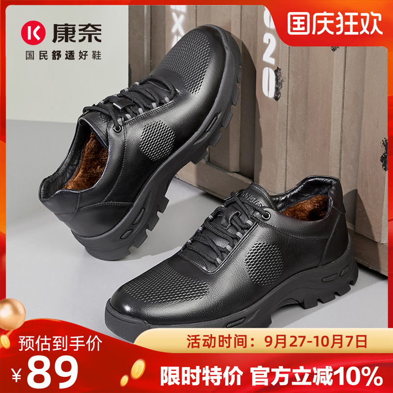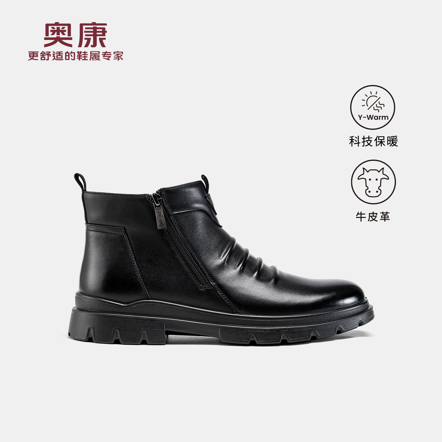 康奈官方男鞋秋冬新款加绒保暖棉鞋男士真皮舒适套筒短靴子男靴子