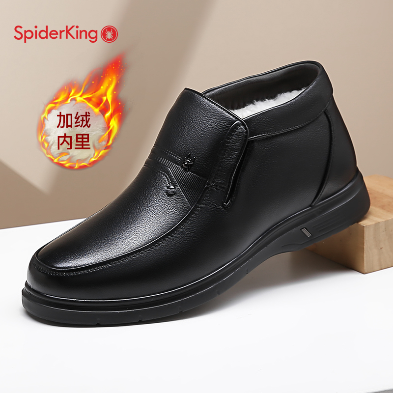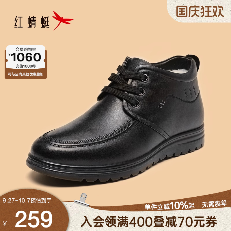 红蜻蜓男士皮鞋冬季新款加绒保暖休闲男鞋真皮中老年棉鞋爸爸鞋子