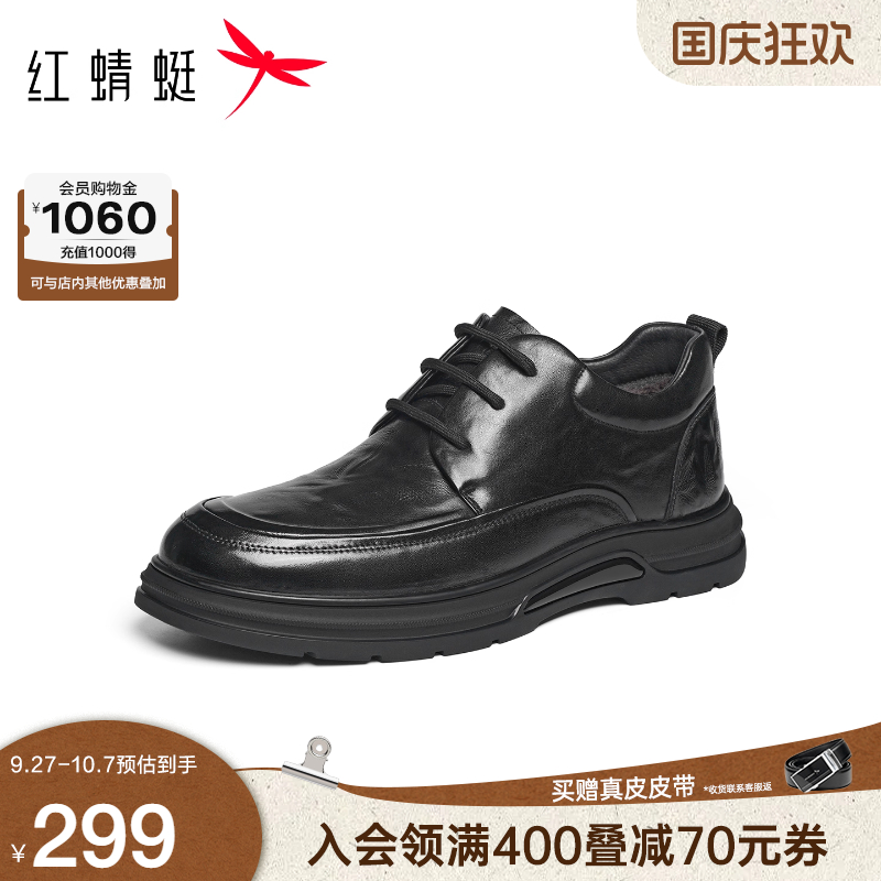 红蜻蜓休闲皮鞋2025秋冬新款商务通勤男鞋运动加绒软底真皮爸爸鞋