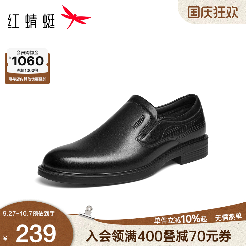 红蜻蜓男士皮鞋一脚蹬大码男鞋加绒休闲中老年鞋子真皮软底爸爸鞋