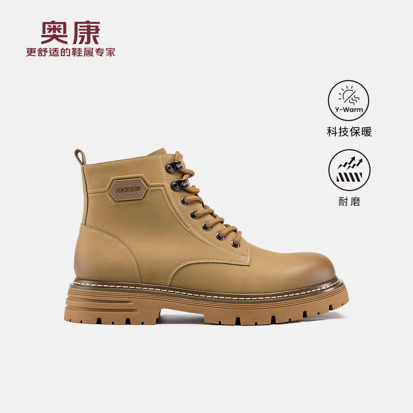 红蜻蜓马丁靴男士秋冬季新款男鞋加绒厚底皮鞋短靴子英伦风机车靴