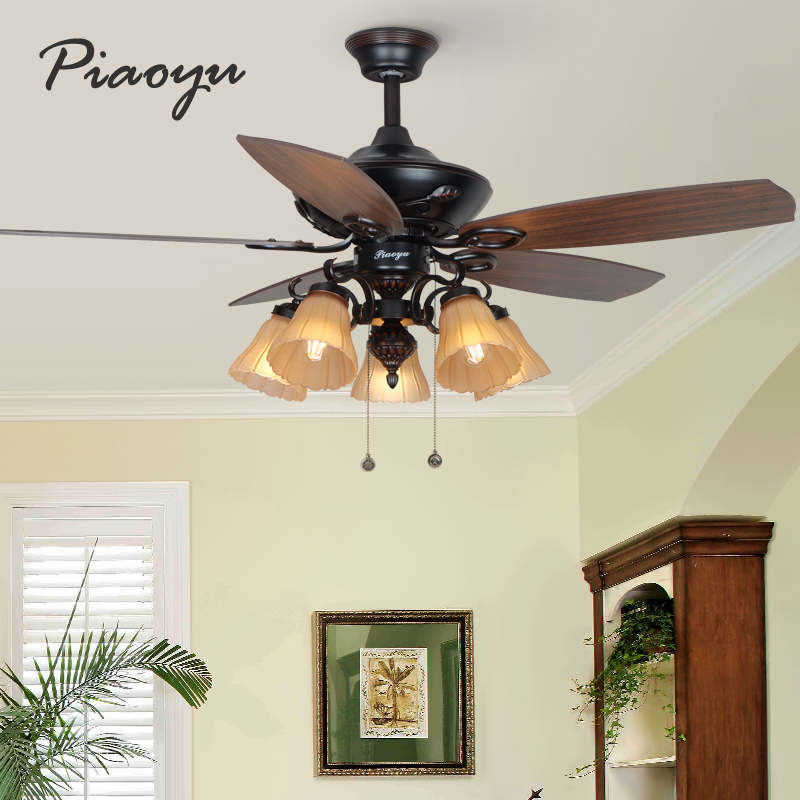 新美式复古吊扇灯欧式木叶静音电扇灯客厅餐厅风扇灯乡村田园吊灯