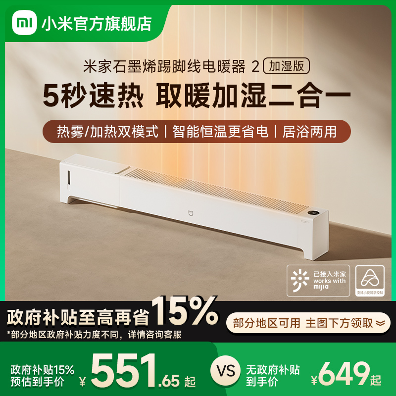 【保价双11】小米米家石墨烯折叠踢脚线电暖器家用节能暖气取暖器