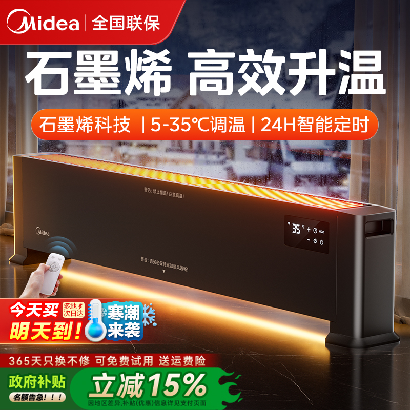 美的踢脚线取暖器石墨烯家用节能神器大面积电暖器电暖气2025新款