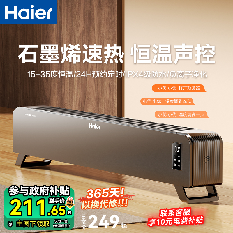 海尔石墨烯踢脚线取暖器家用电暖气节能速热客厅卧室大面积暖风机