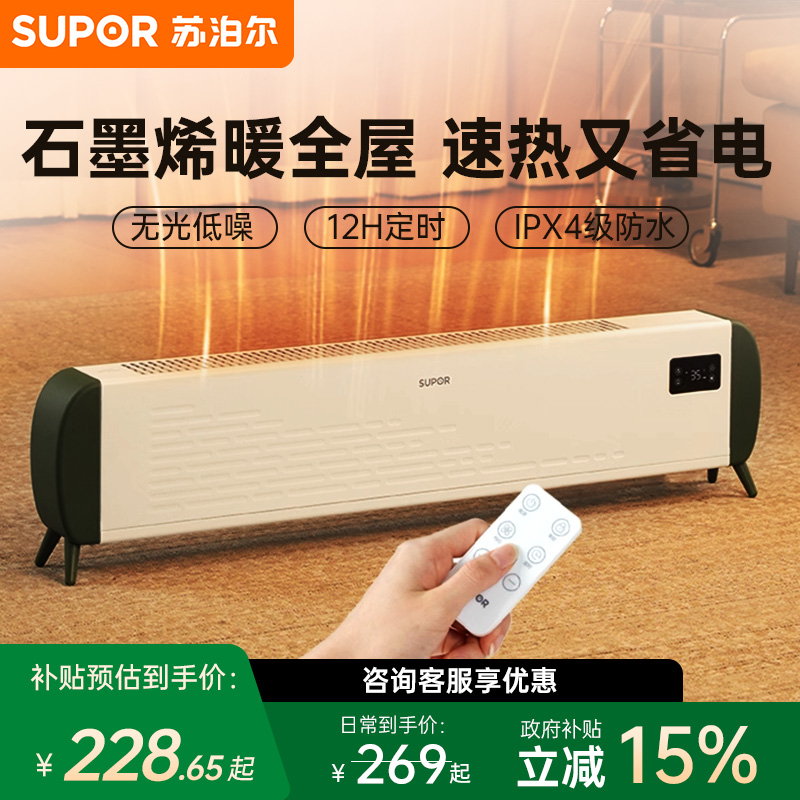 苏泊尔石墨烯踢脚线取暖器家用电暖气神器节能大面积新款暖风机