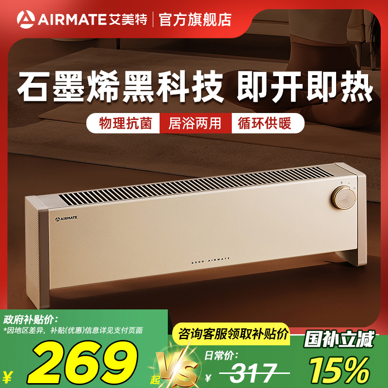 艾美特石墨烯踢脚线取暖器电暖气家用节能省电暖风机防水倾倒断电