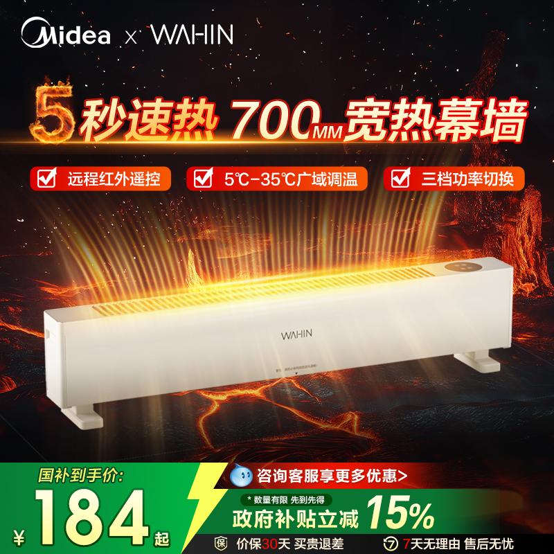 美的华凌踢脚线取暖器家用节能省电浴室神器大面积电暖器暖风机