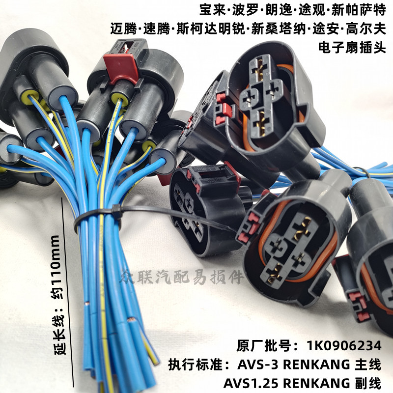 大众CC/宝来/捷达/蔚领/迈腾/速腾/高尔夫探岳途观电子扇风扇插头