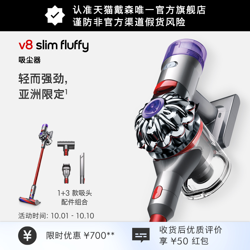 【自营】Dyson戴森V8 SlimFluffy家用无线手持吸尘器除螨仪吸尘机