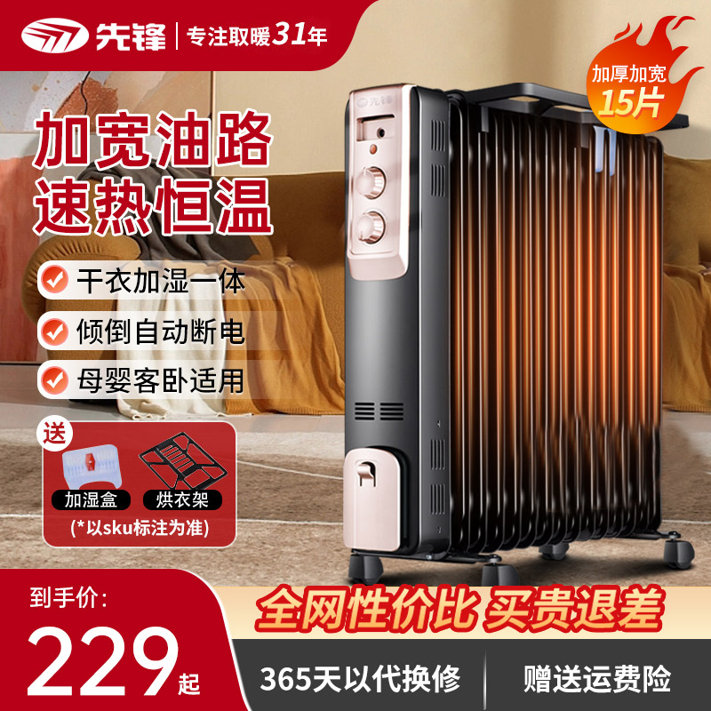 先锋油汀家用取暖器油酊电热暖气片暖风机烤火炉卧室节能速热油丁