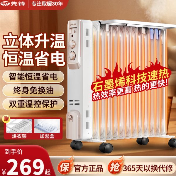 先锋石墨烯油汀取暖器家用17片电暖器恒温制热节能大面积暖风机