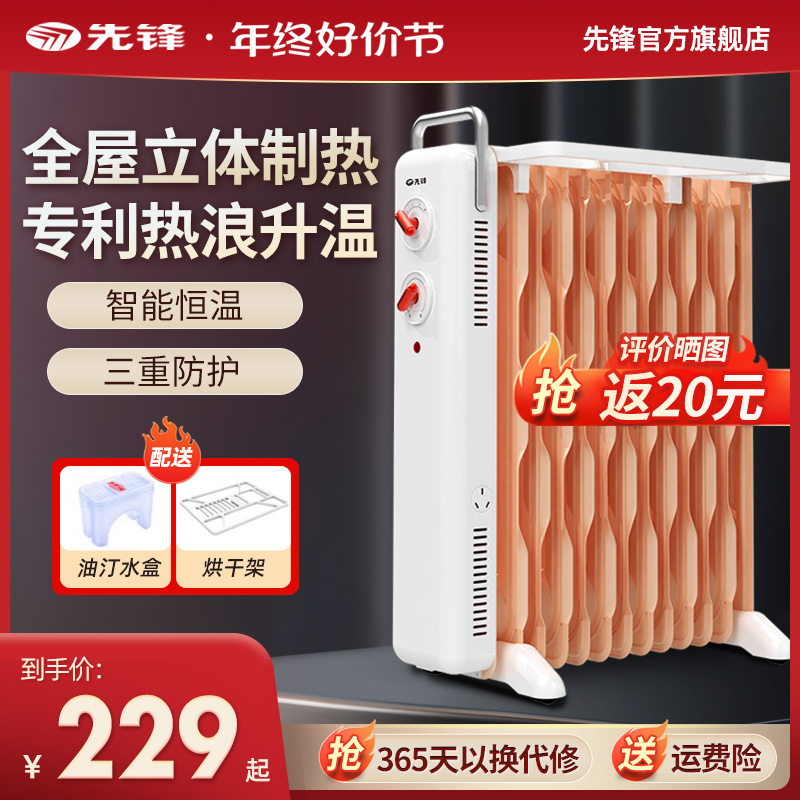 先锋电热油汀取暖器家用节能稳定暖气片机烤火炉落地浴室大面积