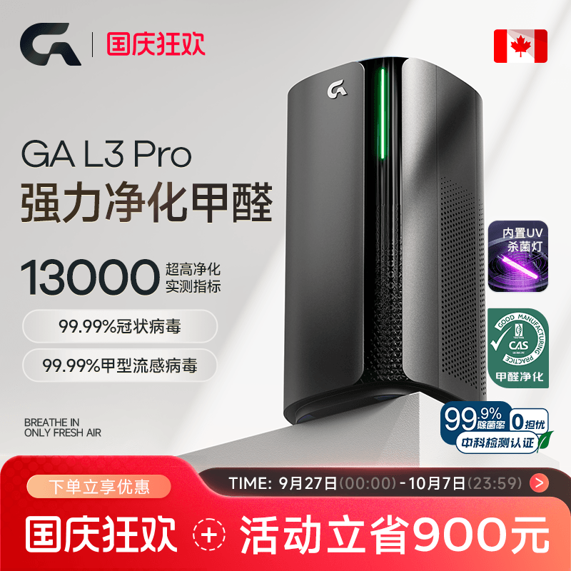 GA空气净化器加拿大除甲醛负离子吸烟过敏原家用紫外线除病菌监测