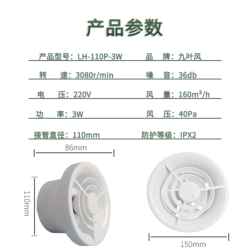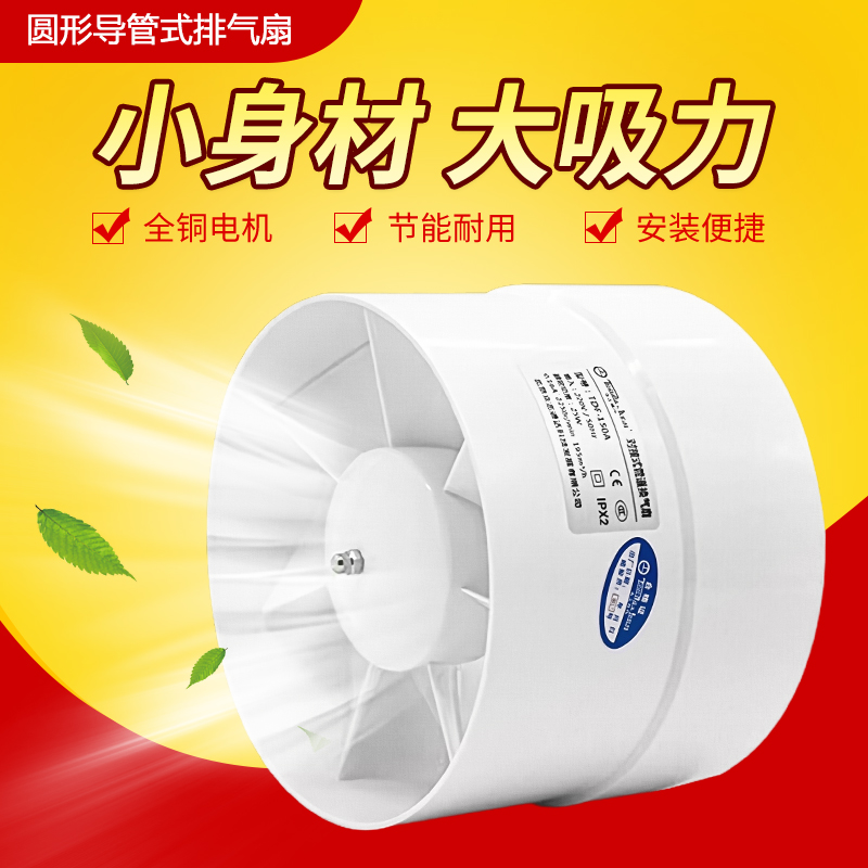 化妆室排气扇圆形排风机110管道厕所墙壁排风扇换气扇强力静音160