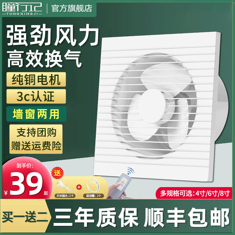 排气扇卫生间换气扇强力静音家用墙壁式管道双向遥控排风扇抽风机