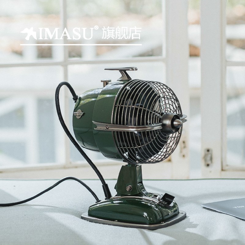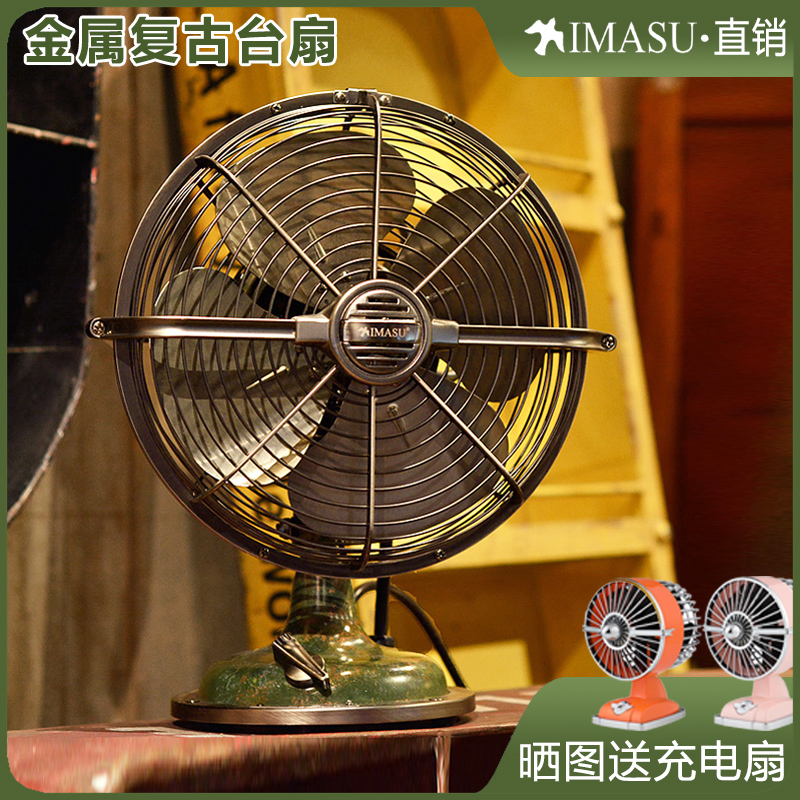 IMASU金属复古电风扇台扇家用仿古怀旧锈绿色粉色台式摇头循环扇