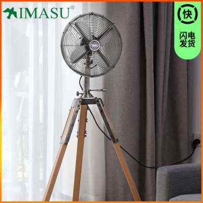 IMASU复古三脚架落地扇电风扇金属实木文艺风仿古怀旧摇头循环扇