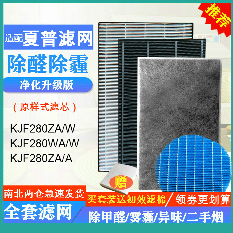 全套适配夏普空气净化器过滤网KC-W280SW/Z280/CE60滤芯BB30-W/W1