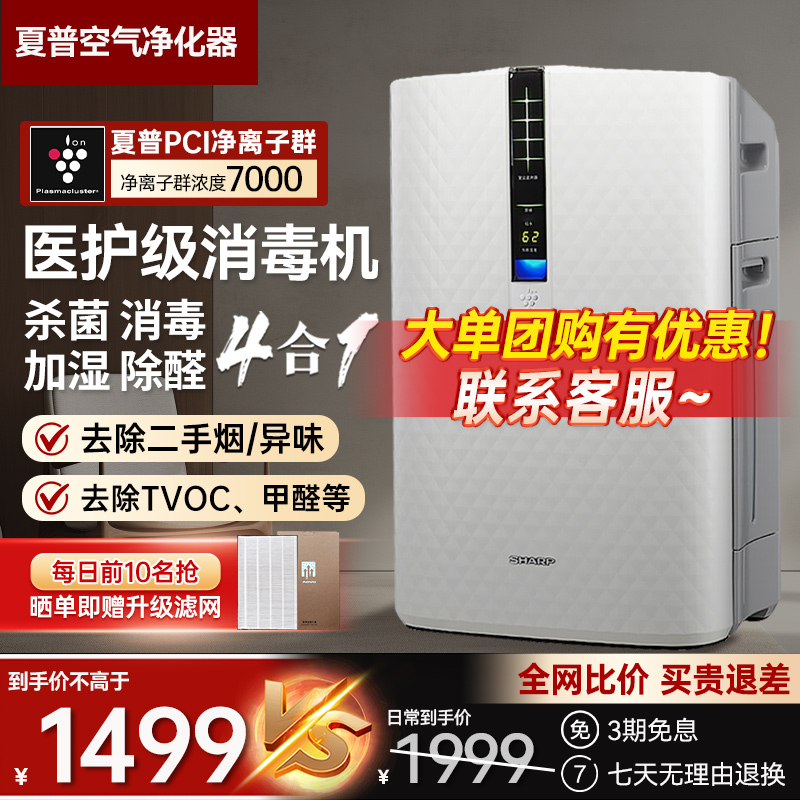 夏普家用空气净化器医用消毒机除甲醛宠物加湿一体W380/W280