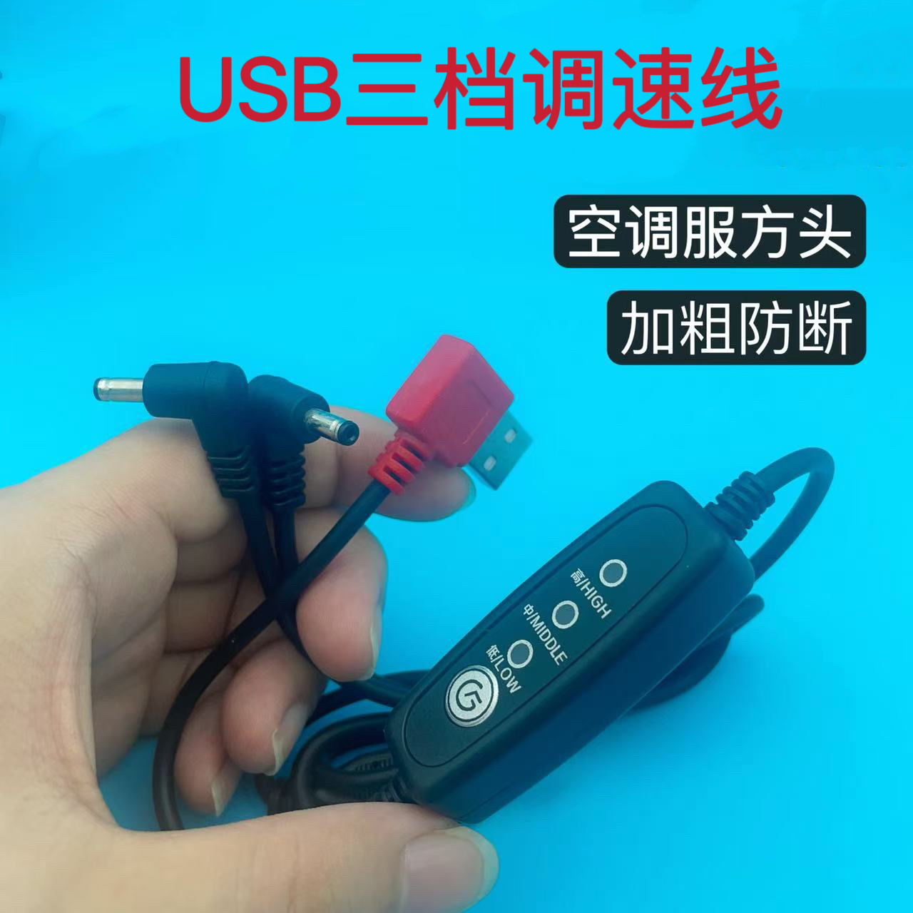 USB接口DC风扇连接线可三档调速空调服风扇服调速线一拖二三通线