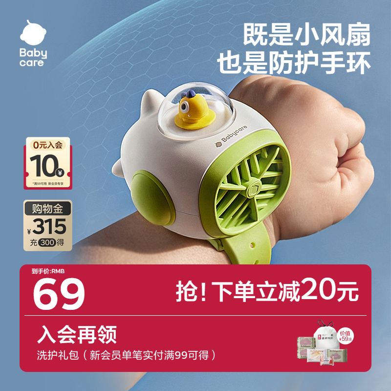 babycare手腕小风扇手持儿童户外便携式随身usb风扇充电静音三档可调宝宝手推车婴儿床无叶溜娃超长续航驱蚊